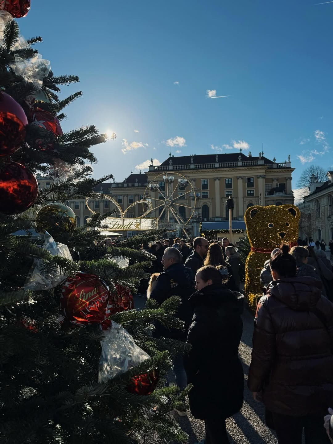 Божиќниот базар пред Rathausplatz, еден од најпознатите во Европа, е впечатлива позадина за нивното патување. Светлечките украси, традиционалните дрвени куќички, мирисот на греано вино и звуците на празничните концерти создаваат атмосфера што го зближува семејството и ја нагласува убавината на традицијата.