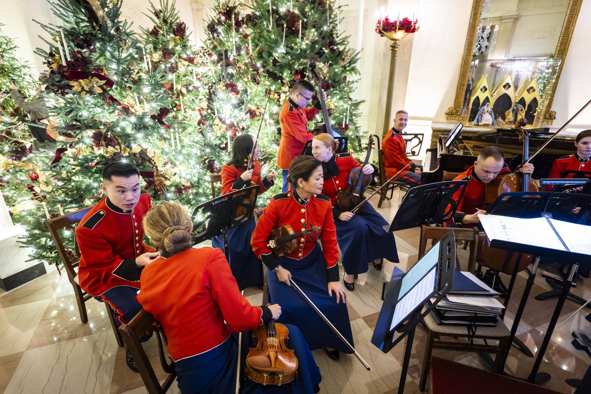 Белата куќа сјае со помош на повеќе од 10.000 сини пеперутки, 7.000 метри лента, 2.000 жичени светилки, 2.800 златни ѕвезди, 200 метри венци, 55 килограми меденки, 51 елка и 75 класични венци. Оваа година, посетителите ќе можат да ја посетат Белата куќа со изменета рута.