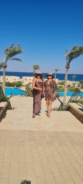 -И така во ова монденско место поминавме два чудесни дена и утредента, 6-от ден во Египет тргнавме кон Каиро. Како шлаг на тортата беше вечерата кај блиската пријателка на Офи, Сахар чиј сопруг е исто така пилот. Таа е чест гостин во Македонија и ужива во македонската храна, природата и секој момент поминат во неа. Сахар специјално за нас дојде од Александрија, за да ни угоди со типични египетски јадења во нејзината прекрасна куќа. На трпезата имаше јагнешки џигер, лозови сарми со тартур прилог, специјално зготвен ориз, посебно супата од блитва со пилешки бујон молохеа, печен гулаб, слатко - кисела салата, како и десертот со кој завршивме крај базенот. Секако, побаравме дозвола сето тоа да го овековечиме.