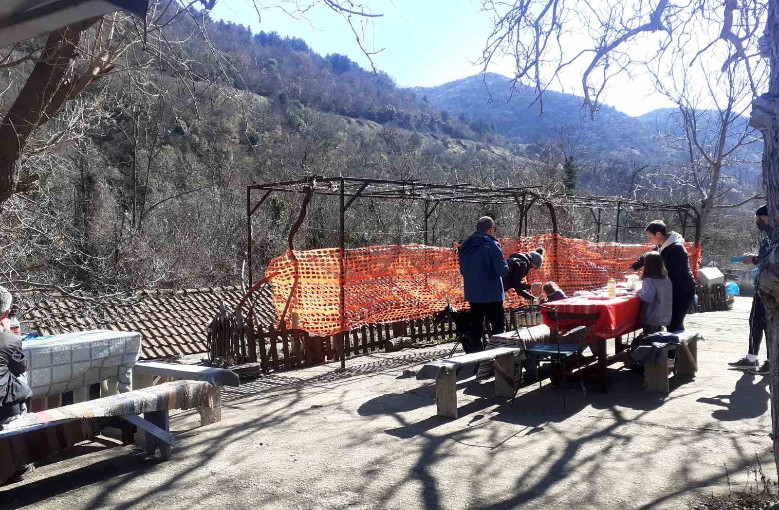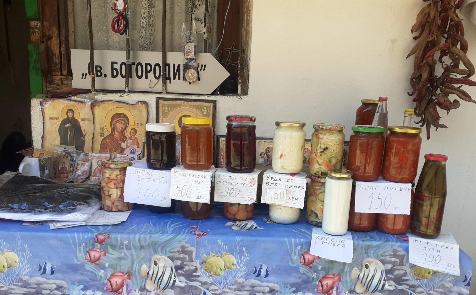 -Да не беше коронава, луѓево немаше да дознаат за ова место, немаше толку да ја засакаат природата. Ги научи да уживаат во домашното. Од уста на уста, се шири приказната и доста луѓе доаѓаат“, ни раскажува чичко Стојан додека ни бара клупа и столчиња и не нуди да седнеме, затоа што дворот на црквата е полн со луѓе кои по прошетката се одмараат токму овде. Стојан со секој од нив ќе си промуабети, а тетка Светлана знае да понуди со пита, домашно слатко, пиперки со урда, лутеница, пача во сезона на постудени денови мои можете да си ги купите во црковниот двор. Има можност да си нарачате и риба, треба само еден ден однапред да ги известите домаќините. Чичко Стојан ја фрла мрежата во Пчиња, тетка Светле ја подготвува рибата, и добивате ручек како во ресторан, со незаменлив поглед. И домашната пита оди со закажување, ден однапред, и штом стасате, ве чекаат на трпезата покрај Пчиња, на неколку чекори од дворот.