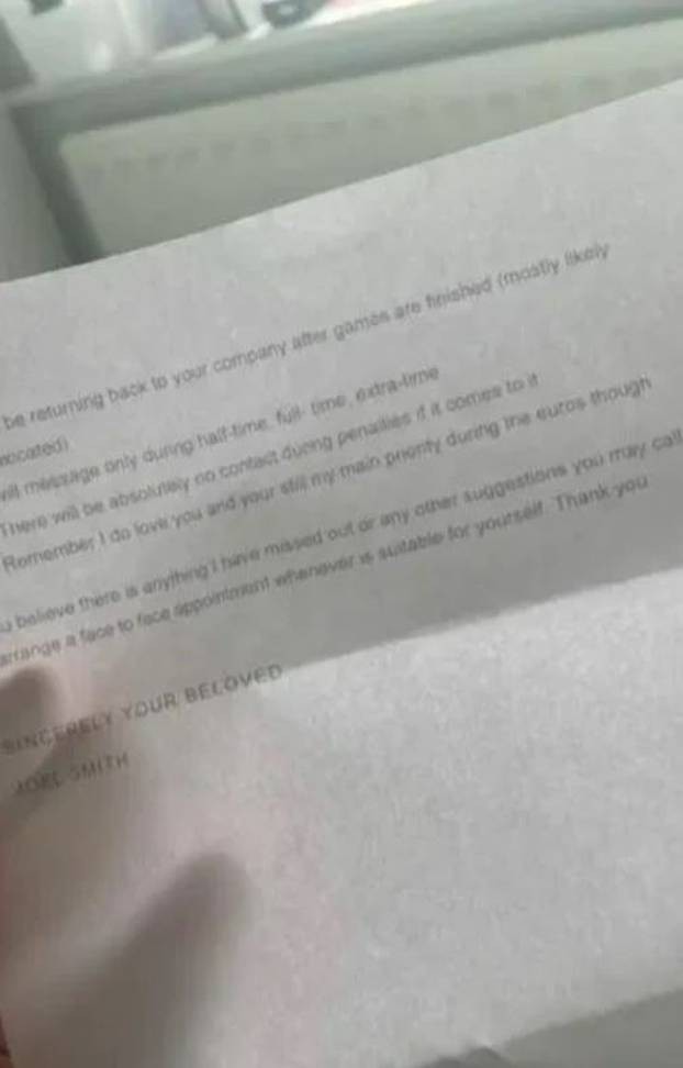 „Јас не сум единствената што добила писмо од нејзиното момче пред почетокот на Европското“, рече таа на видеото пред да го покаже договорот што и го испратил нејзиното момче.