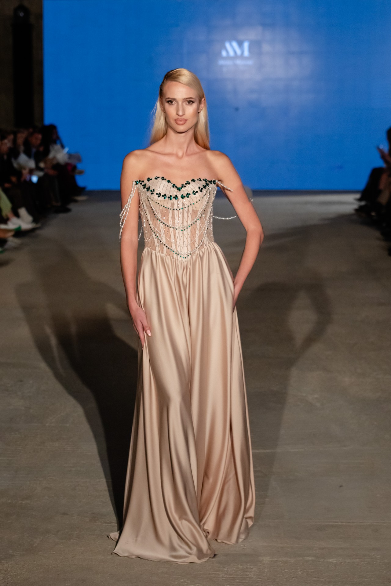 Вечерта продолжи со јасен авторски потпис под брендот A2 Atelier, на Анастасија Атанасовска која ја презентираше својата најнова колекција, во која архитектонската структура на облеката се сретна со суптилната женственост. Чистите линии, геометриските кроеви и совршениот баланс помеѓу форма и движење создадоа впечаток на модна дисциплина што инспирира.