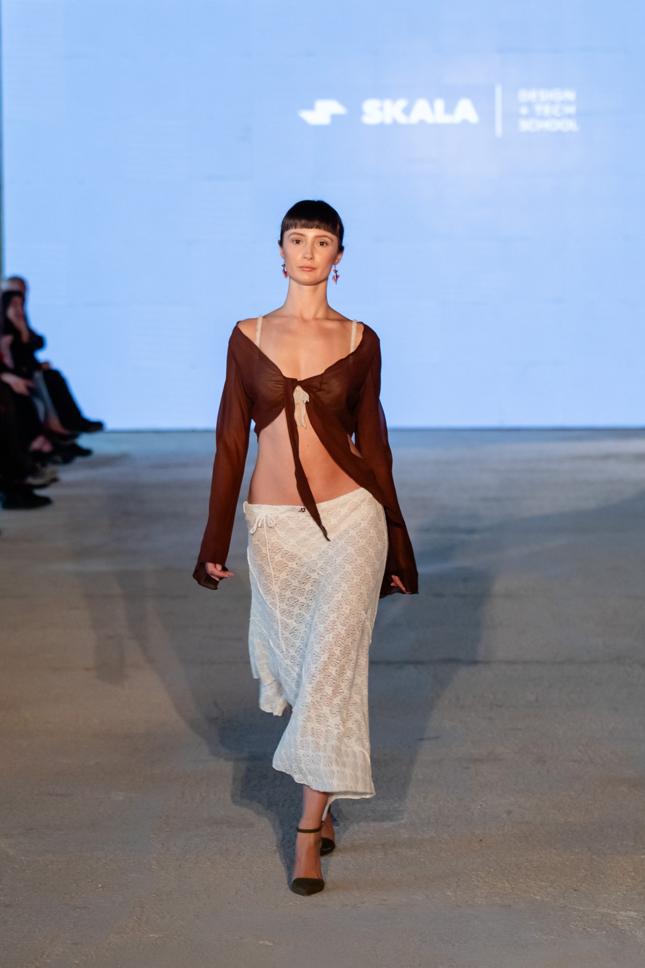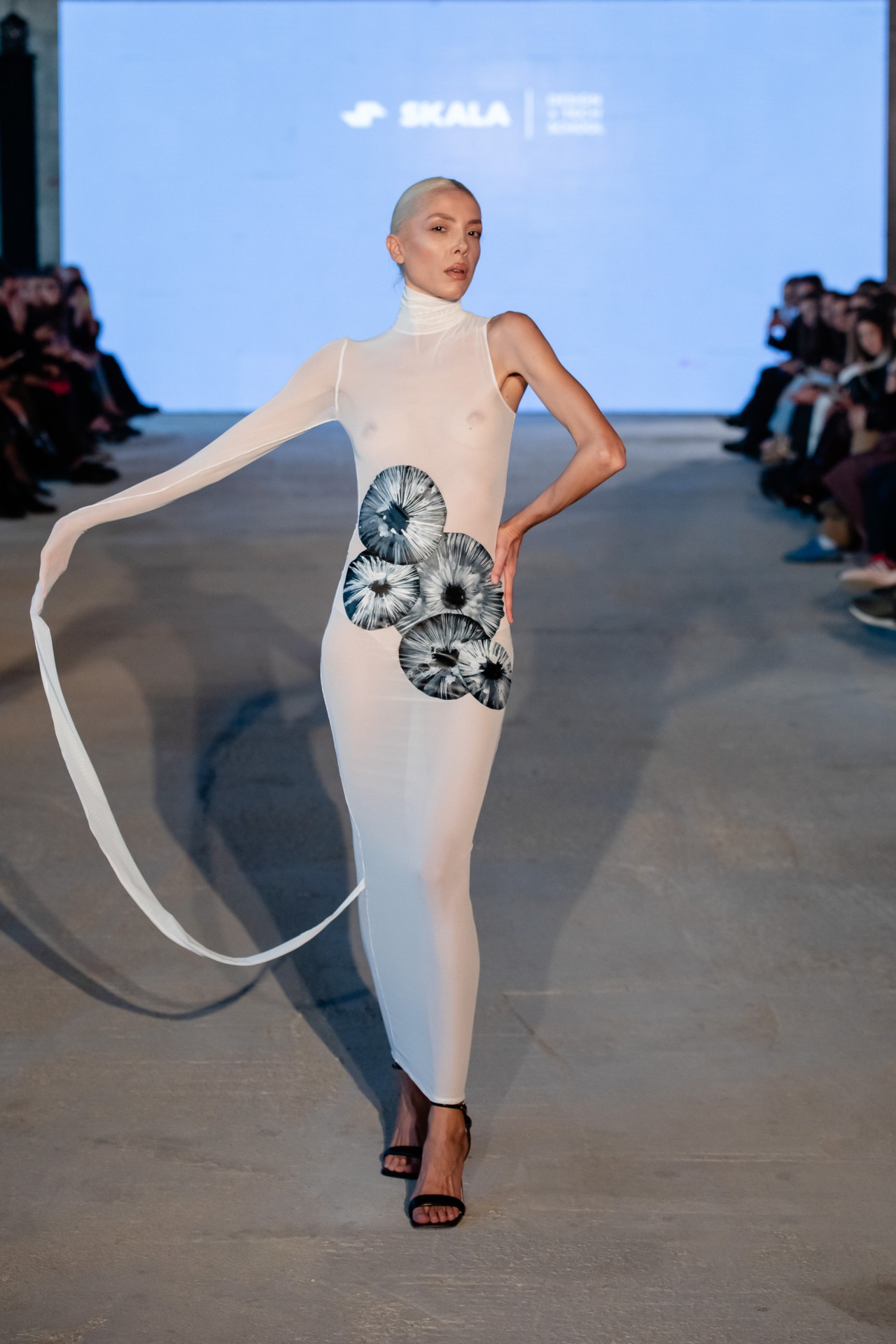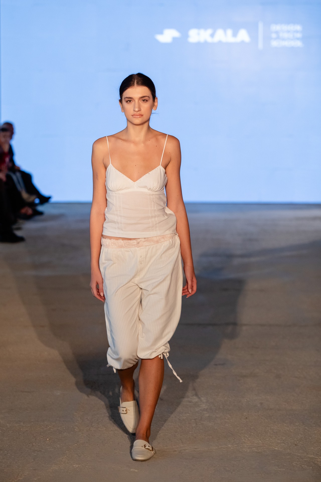 Денот го отворија студентите на Академијата за моден дизајн СКАЛА - Ивана Гијовска, Алија Демиралиески, Јована Спасеновска, Бојана Хаџиева и Ивана Груевска со колекции што зборуваат на јазикот на експериментот, рециклираните материјали и урбаната женственост. Нивните силуети беа искрени, понекогаш сурови, но секогаш со став.