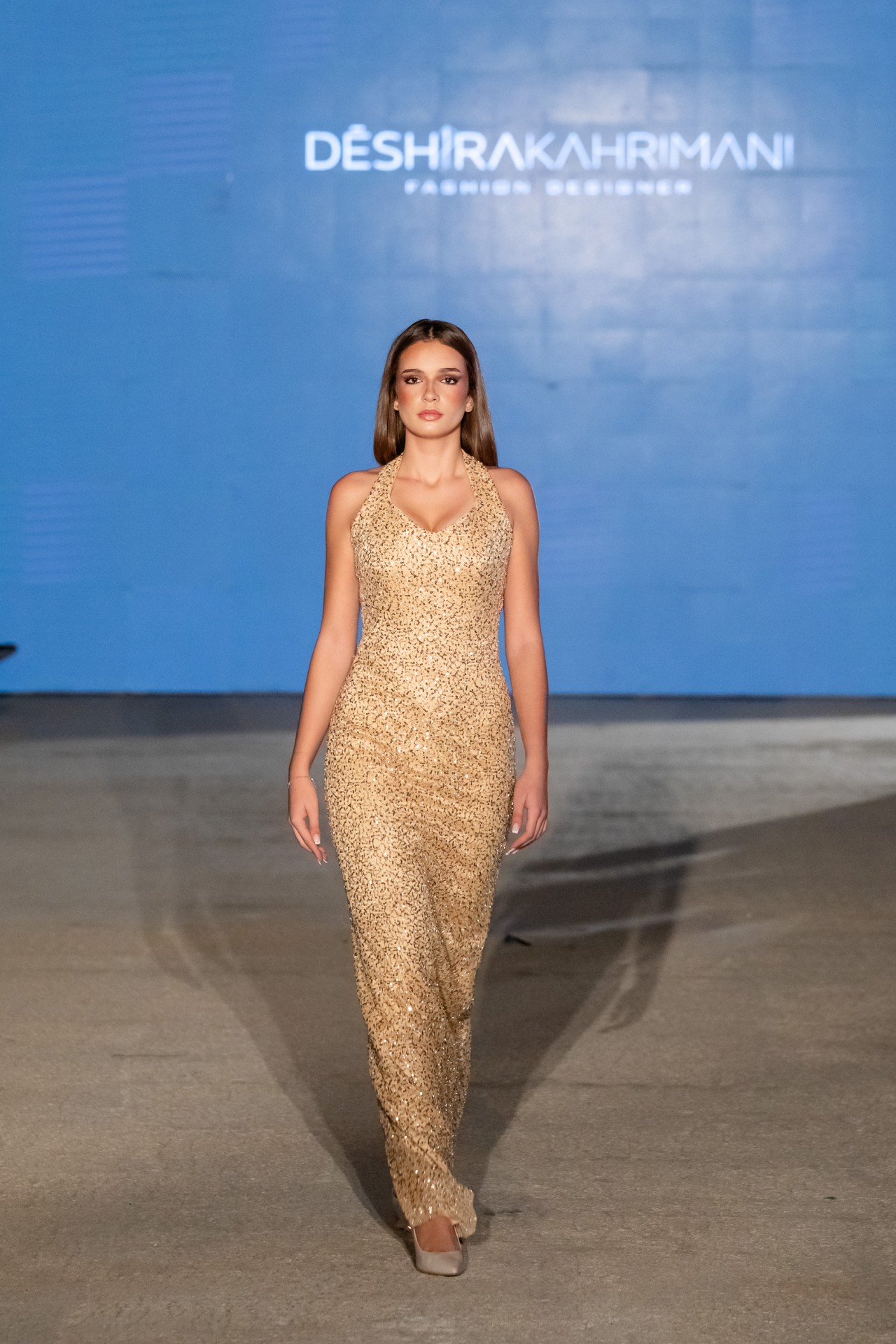 Дешира Кахримани ја отвори вечерната програма со колекција што мирисаше на луксуз и топлина. Кадифето и сатенот, нејзините препознатливи материјали, овојпат беа прошарани со детали што фино ги поврзаа гламурот и класиката. ByDeshir е бренд кој говори со мекост, но остава впечаток кој трае.