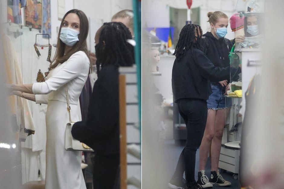 Деновиве, во шопинг со ќерките Захара и Вивиен, Анџелина носеше тесен, бел фустан под колената и тренди влечки со отворени прсти, кои беа полн погодок минатата сезона. Стајлинг кој одлично ѝ прилега.