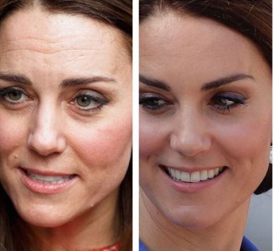 - Нашата Кејт сака „бејби ботокс“. На фотографијата „пред“ изгледа уморно и на лицето ѝ се гледаат брчките. На фотографијата „по“ лицето ѝ блеска. Загледајте ги ситните брчки на челото, но и на делот на челото помеѓу веѓите - напиша тој.
