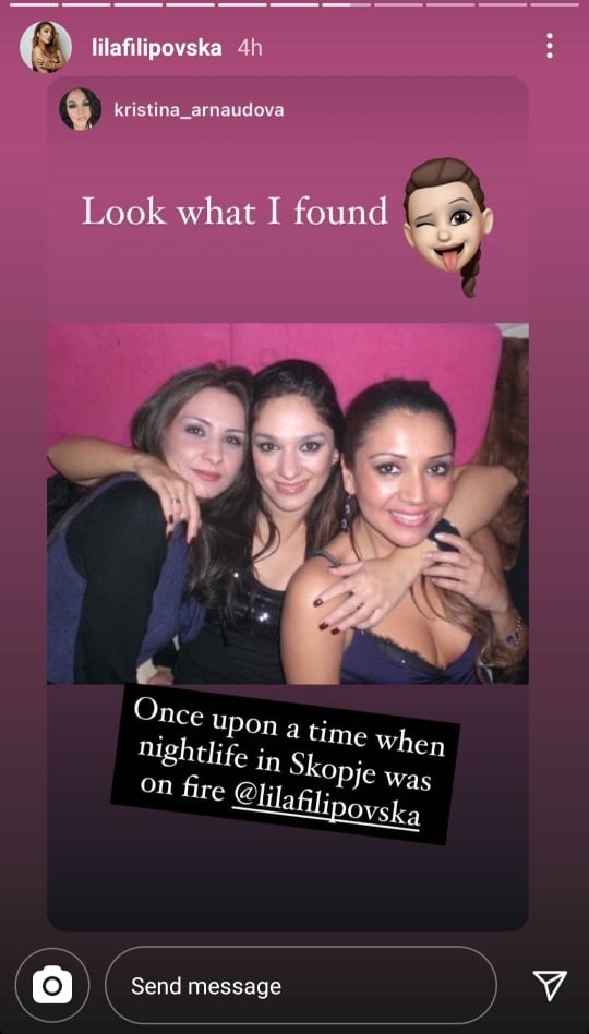 „Види што најдов“, напиша Арнаудова објавувајќи ја фотката од времето кога, како што велат таа и Лила, ноќниот живот во Скопје бил закон.