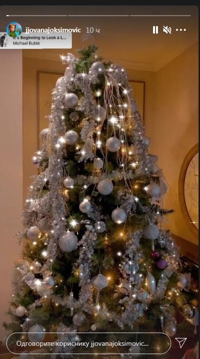 Познатата водителка и сопруга на популарниот пејач Жељко Јоксимовиќ, Јована Јоксимовиќ, на својот профил на Инстаграм се пофали пред своите следбеници за празничната атмосфера во нивниот дом, како и за елката што ја украси за претстојниот празник.