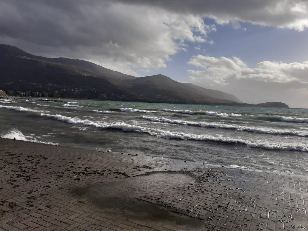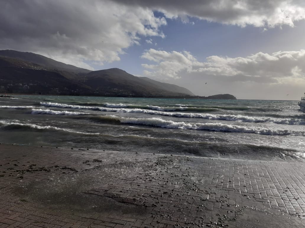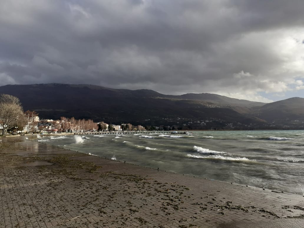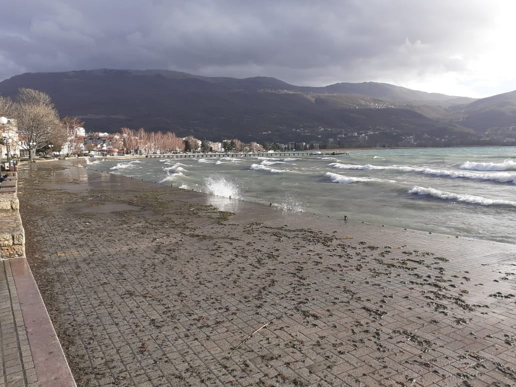 (ФОТО) Охридскиот кеј поплавен, нема жив човек на шеталиште