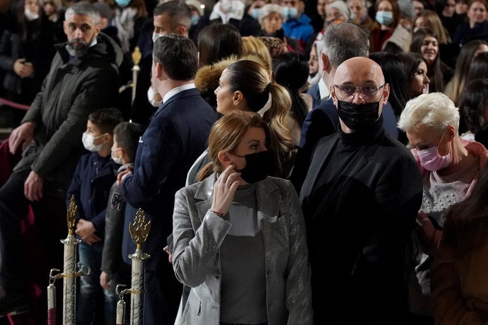 (ФОТО) Се причествуваа од иста лажичка: Цеца и други познати личности за Божиќ во преполниот храм во Србија
