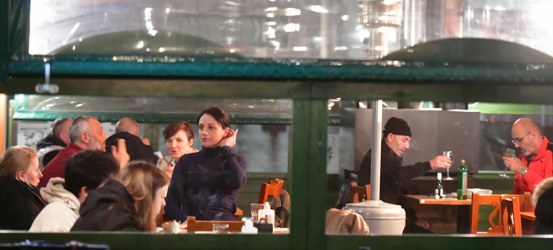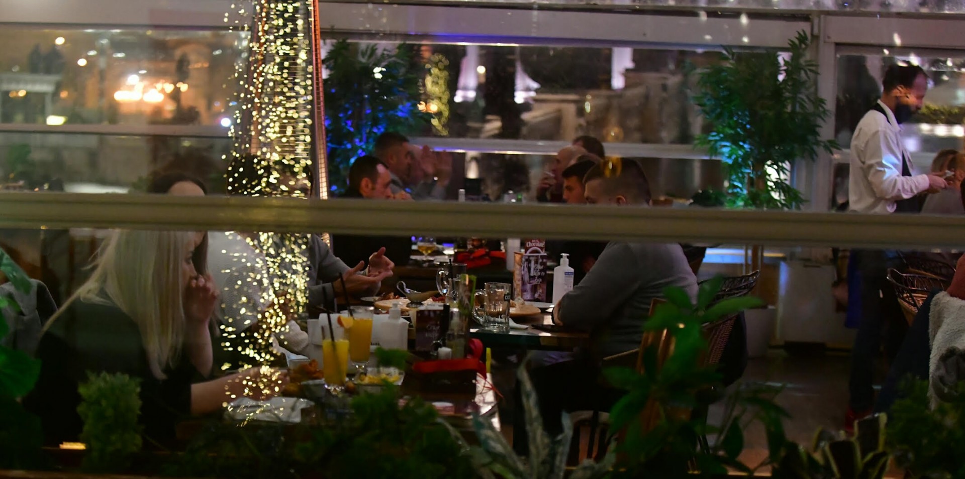 Таква една слика видовме и вечерва во центарот на Скопје. Без оглед на врнежливото време, луѓето се излезени во рестораните, каде што засега се одржува препорачаната дистанца, и се почитуваат мерките- не повеќе од четири лица на маса.
