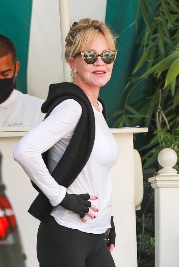 Неодамна папараците ја уловија Мелани низ улиците на Холивуд додека одела на викенд бранч со нејзината блиска пријателка Ева Лонгорија. Прославената 64-годишна дама покажа завидна, витка фигура во спортски хеланки со проѕирни детали, памучна бела маичка и црни патики.
