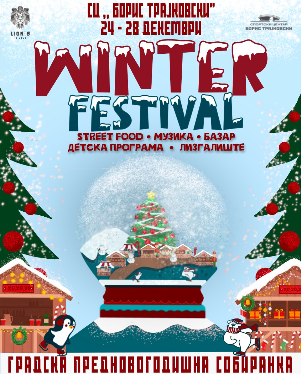 Од 24 до 28 декември, просторот пред арената „Борис Трајковски“ ќе се претвори во новогодишна идила - WINTERFESTIVAL, фестивал кој ќе го донесе духот на европските божиќни базари во Скопје.