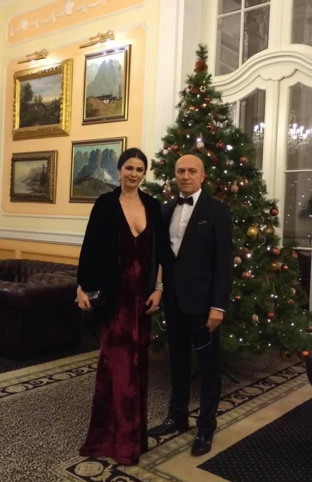 Таа во софистициран долг фустан во боја на вино и длабоко деколте, а тој во фрак надополнет со пеперутка вратоврска.