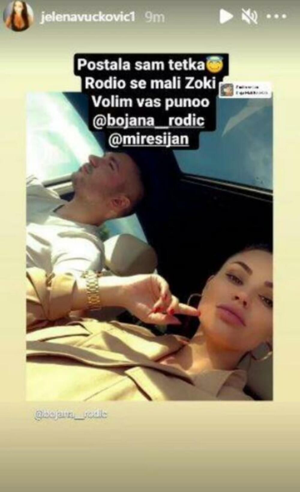 Среќната вест ја споделија ќерката на Гоца Божиновска и пејачката Јелена Вучковиќ, која ја сподели фотографијата на Мирко и Бојана на Инатаграм и напиша: