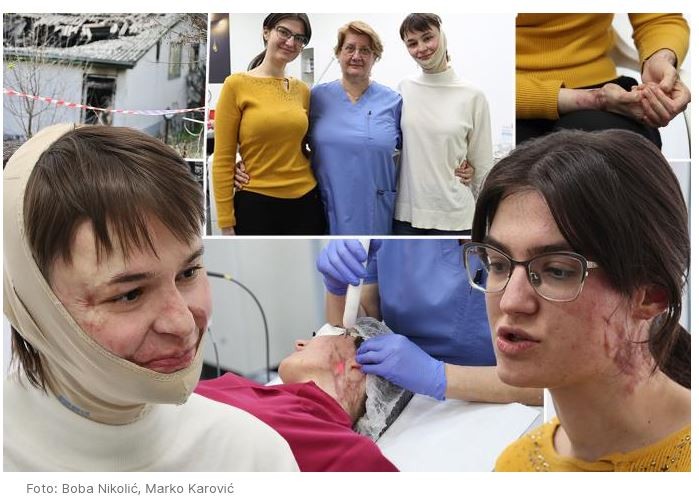 Нов Белград. Денот е мрачен и дождлив. Елегантна ординација на д-р Јасмин Козарев. Конечно разговор. Одамна знам за девојките од Кочани што ги лекува. Чекав персоналот да разговара. Влегува - топли кафени очи и широка насмевка. Голема девојка. Покриена, преврзана глава. Помали лузни излегуваат на образите и велат дека најлошото е под завојот. Надалина. Се поврзува со познатата песна на Оливер Драгоевиќ. Ретко име, особено за Македонија. Родена во 2006 година, го добива од нејзината баба Нада, но се прилагодила на 21 век. Истиот во кој ќе доживее незамислива трагедија.
