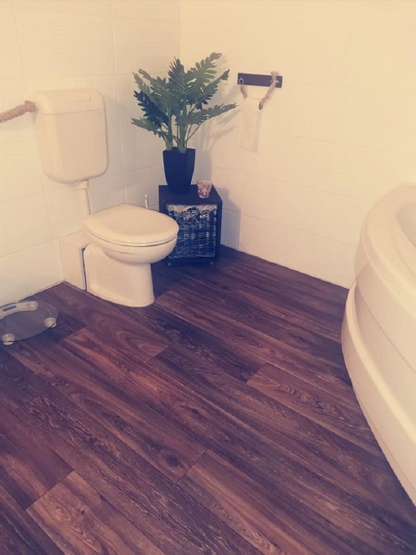 - Купивме линолеум, го постави мојот сопруг. Купатилото има 9 квадратни метри, затоа купивме линолеум 3х3 метри и го ставивме директно врз плочките - вели Ивана и додава дека станува збор за ПВЦ линолеум, подебел, со гума, па лепењето не било ни потребно.