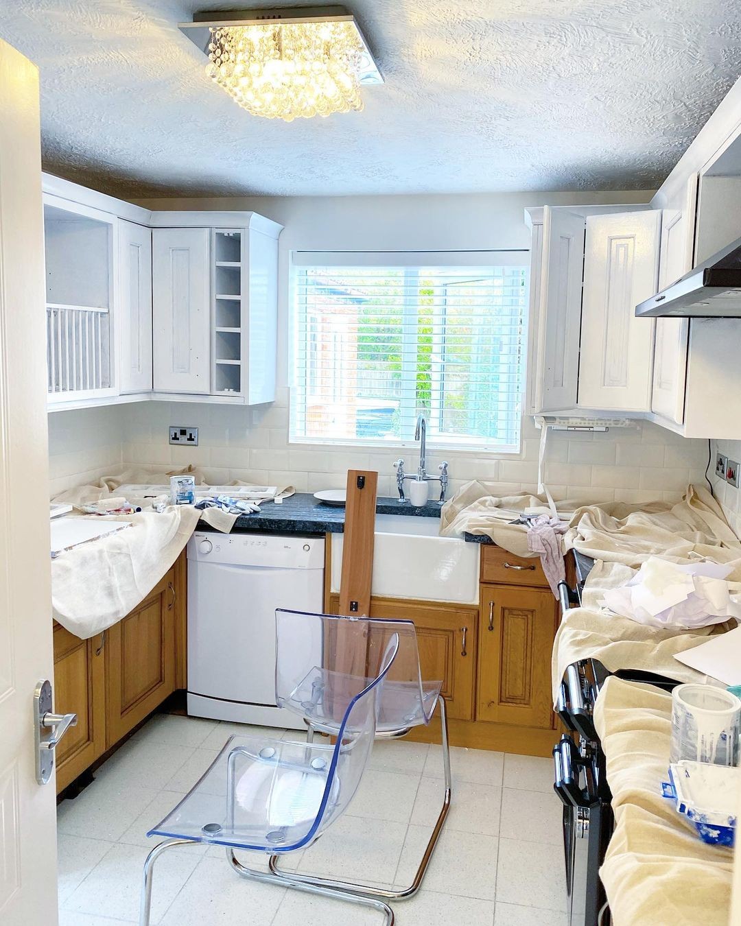 - Пол и јас моравме да испланираме сè убаво, па затоа бојадисавме сè, додека девојчињата спиеа. Започнавме во 8 часот наутро и завршивме до 8 часот утредента. Отстранивме сè од шкафовите, ги отштрафивме, а потоа темелно ги исчистивме сите ормани за да ги отстраниме маснотиите или нечистотијата. Откако ги подготвивме површините, нанесовме еден слој бела боја на сите ормани. Оставивме да се исуши преку ноќ и потоа го нанесевме горниот слој утрото. Новата кујна би нè чинела околу 8.000 до 10.000 фунти, така да ова вредеше - вели таа.