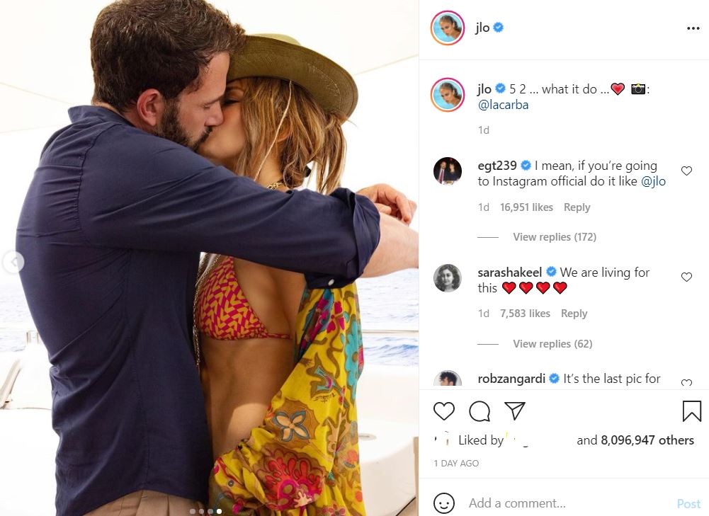 Најпрво Џеј Ло објави фотка на која се бакнува со Бен, на која собраа над 8.000.000 допаѓања.