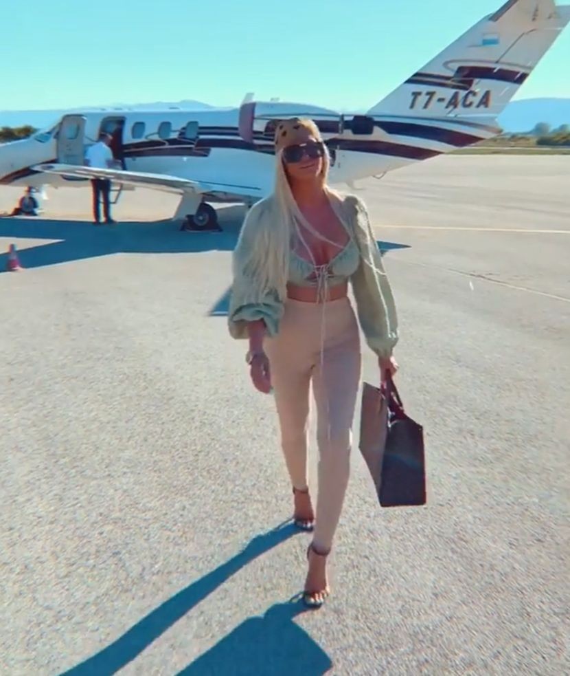 Јелена Карлеуша често патува со приватен авион, и за деловни цели и за приватни патувања со семејството или пријателите.