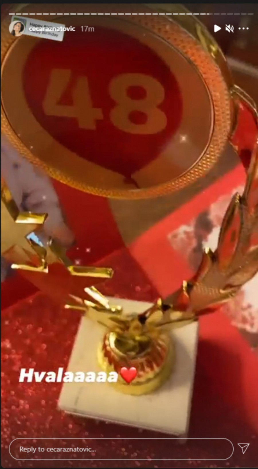 Имено, на нејзината домашна адреса, фановите ја израдуваа со златен пехар на кој е испишан бројот 48. Фановите направија и неколку фотографии од Цеца со малиот Жељко.