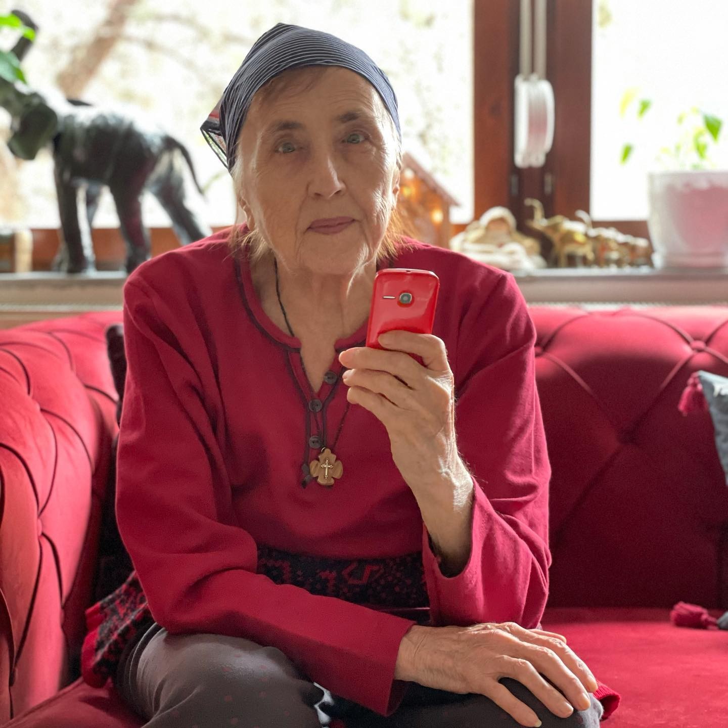 „Добрата страна на пандемијата- скапоцени моменти како овој... Ти благодарам мамо што сè уште му пркосиш на времето со својот младешки дух и што го споделуваш со нас ... Те сакаме“, напиша Калиопи, и потполно се согласуваме со неа, бидејќи госпоѓа Марија зрачи со позитивна енергија.