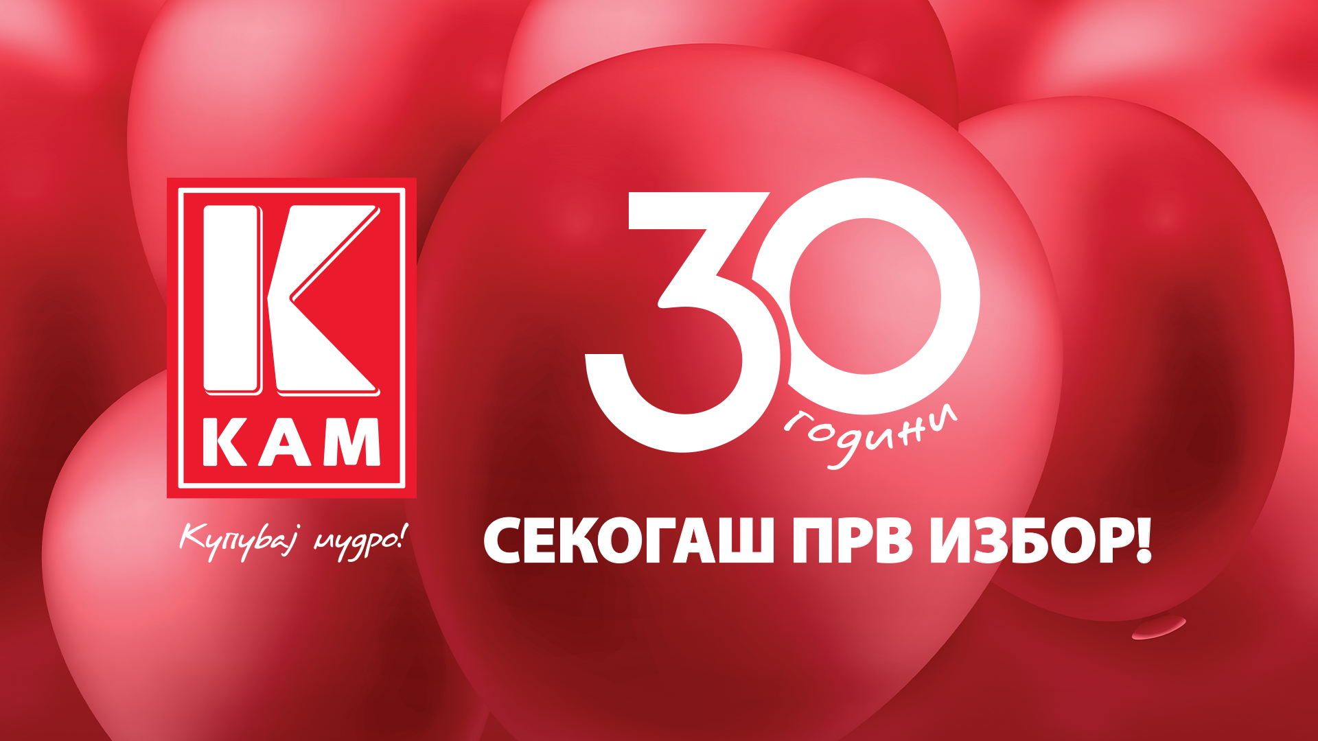 КАМ, македонскиот број еден, годинава одбележува три децении јубилеј и влегува во ново поглавје од својата успешна македонска приказна заснована на квалитет и доверба. Пионер во многу сегменти во полето на малопродажбата, компанијата е позната по грижата за секој потрошувач и по тоа што ги донесе ниските цени на пазарот.