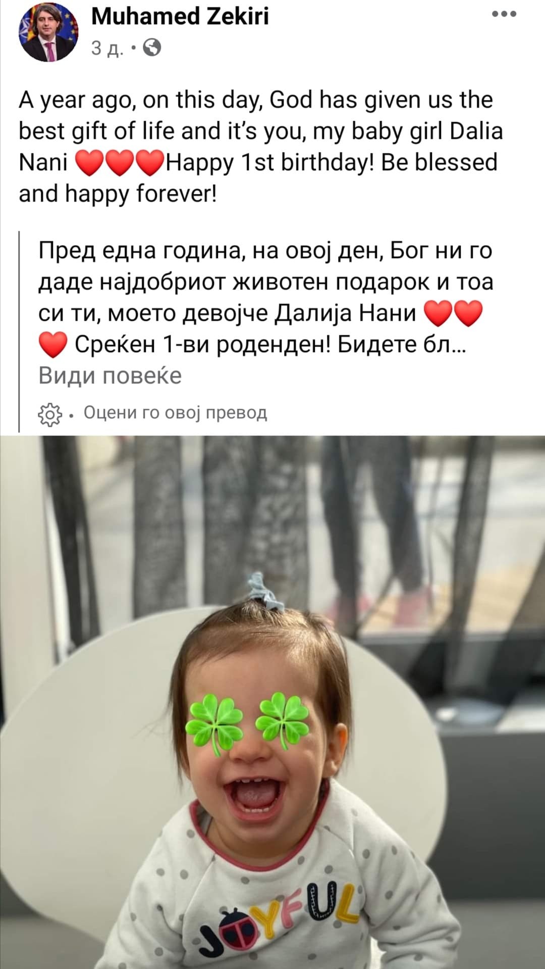 Ќеркичката на Мухамед Зеќири наполни една годинка (ФОТО)