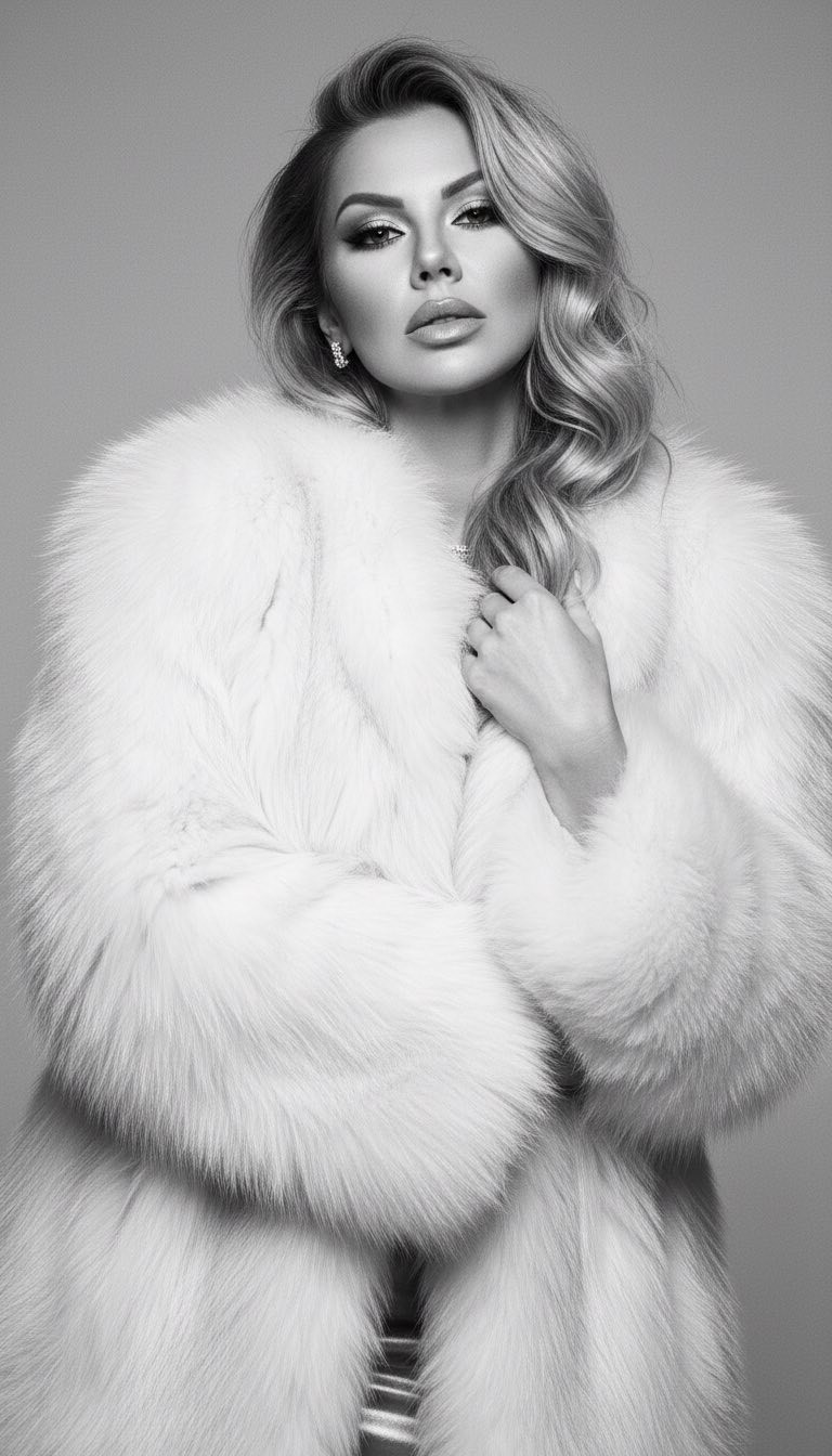 На следните фотографии, Андријана се претставува како жена со јасна модна визија. Бунди со различни текстури – бела, црна, кафеава, сребрено-сива – создаваат впечаток дека секоја боја носи нејзина друга приказна. Во сивата и златната, изгледа како модерна холивудска дива. Во кафената, топла и класична, има винтиџ нота што потсетува на старите фотографии од софистицирани европски аристократки. Во црната, изгледа моќно, самоуверено, како жена која ја има најсилната формула: талент и стил.