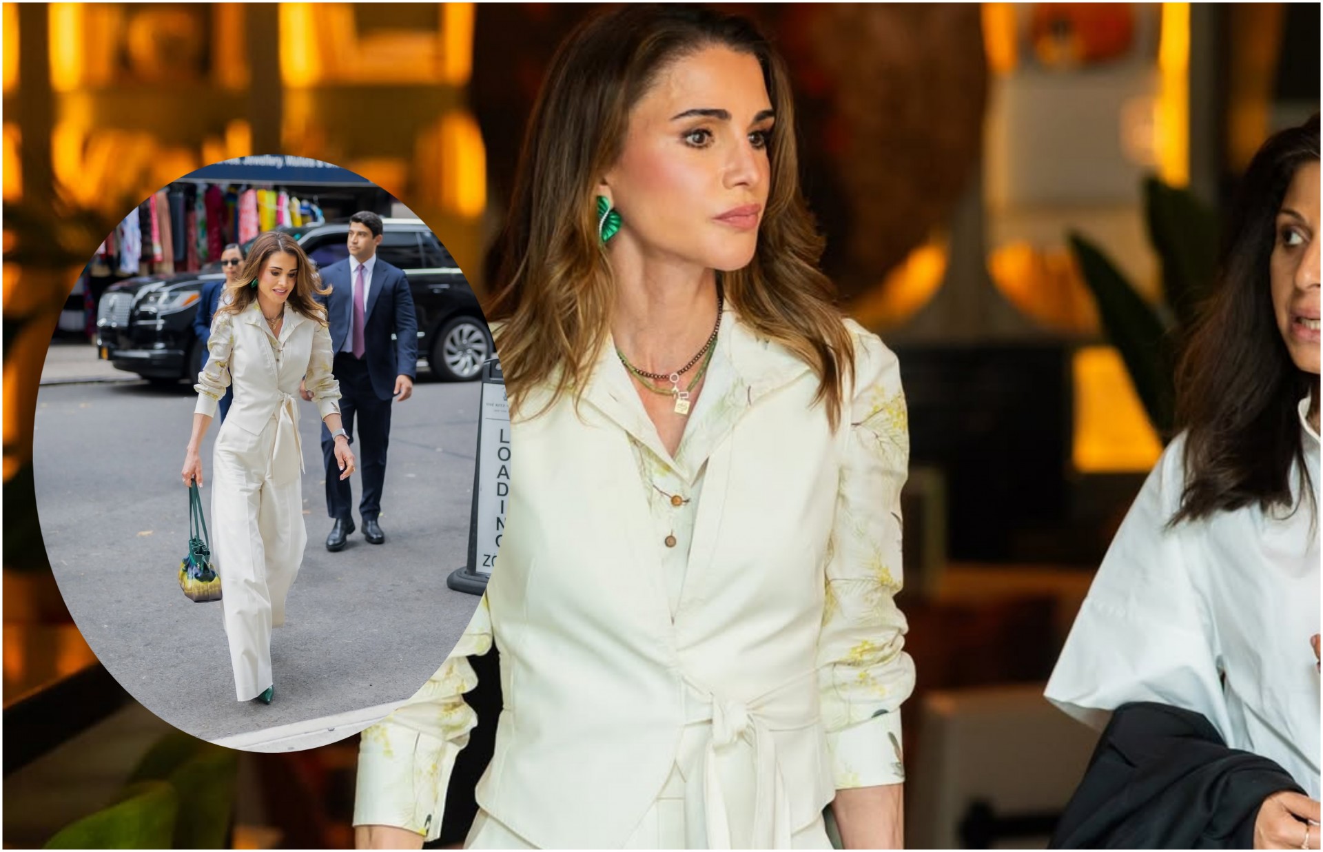 Јорданската кралица воодушеви во Њујорк со монохроматска елегантна комбинација која ја поигра со шик елек и чанта. Овој моден детаљ му даде посебен шмек на нејзиниот стил.