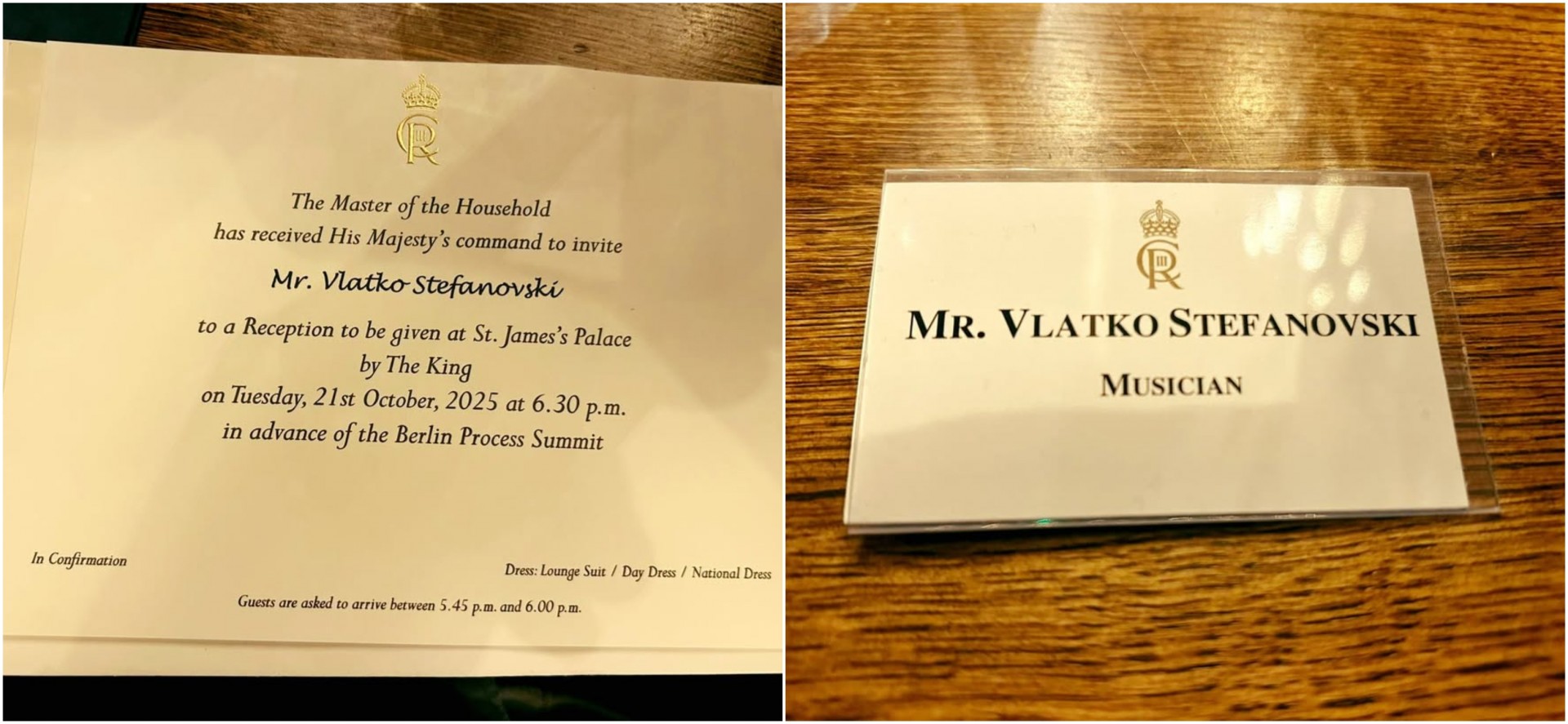 На приемот кај кралот Чарлс III за учесниците на самитот на Берлинскиот процес во Лондон, покрај политичките лидери беа поканети и познатиот македонски музичар Влатко Стефановски и режисерот Милчо Манчевски.