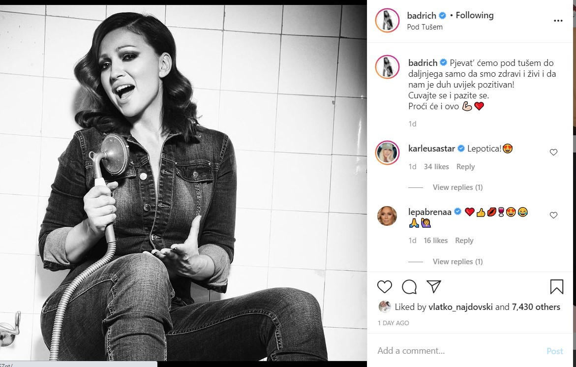 „Сите ќе пееме само под туш, само да сме живи и здрави. И духот секогаш да ни е позитивен“, напиша Нина во описот на сликата и им порача на сите да останат позитивни.