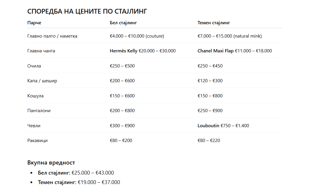 Табеларно ви прикажуваме колку чинат модните комбинации на шоуменот .