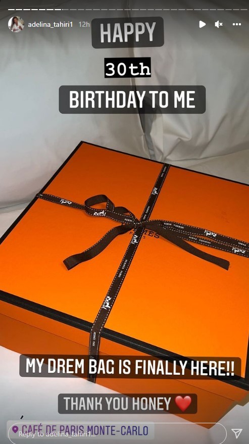 Покрај роденденското патување на оваа луксузна дестинација, Аделина од сопругот си доби и Ермес (Hermès) чанта, која откри дека е нејзината чанта од соништата.