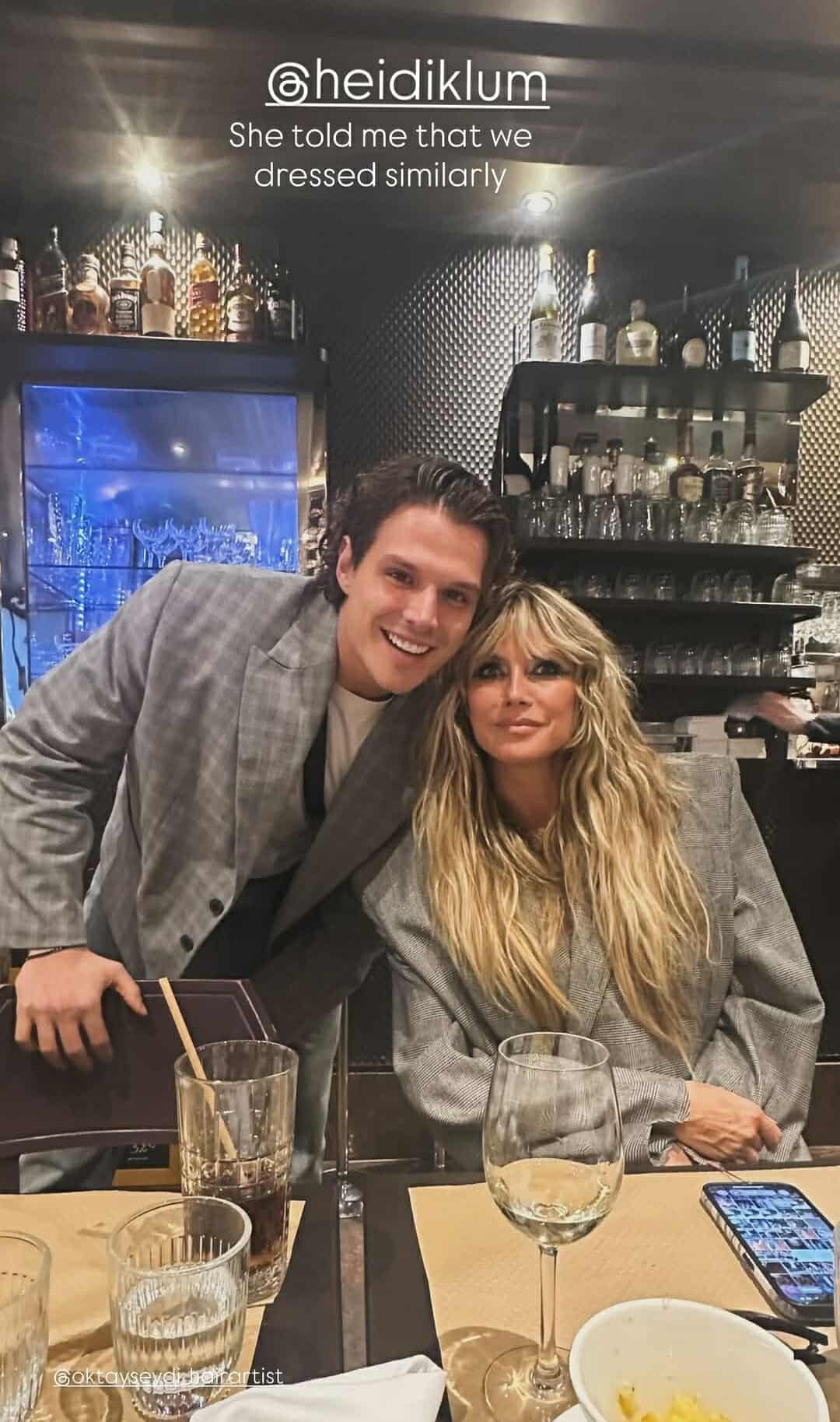 На фотографијата што самиот ја сподели, Октај и Хајди изгледаат како модно усогласен пар – и двајцата во елегантни сиви костими кои зрачат со софистицираност и стил. „She told me that we dressed similarly“, напиша тој со насмевка, додавајќи дека Хајди е „so cute“.