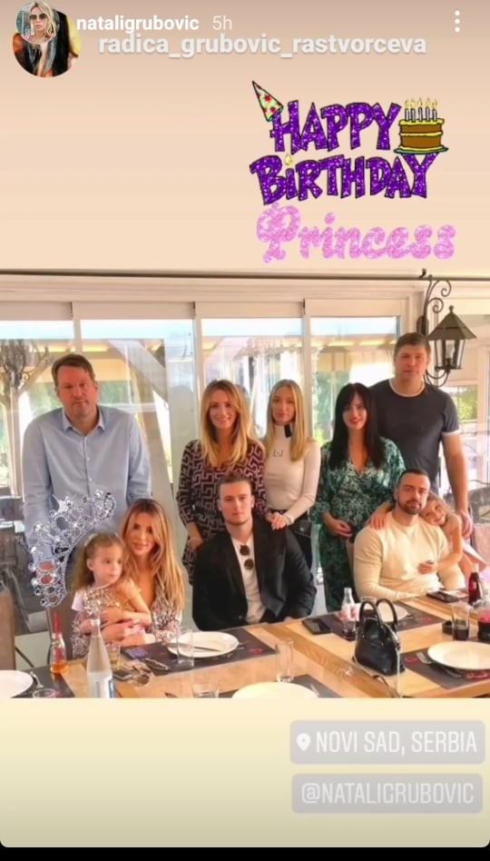 Наталија и нејзиниот сопруг, бизнисменот Дрен Глушац, ја организираа роденденската забава во познат ресторан во Нови Сад. На роденденот, освен нивните пријатели, беше и семејството на Наталија од Скопје.