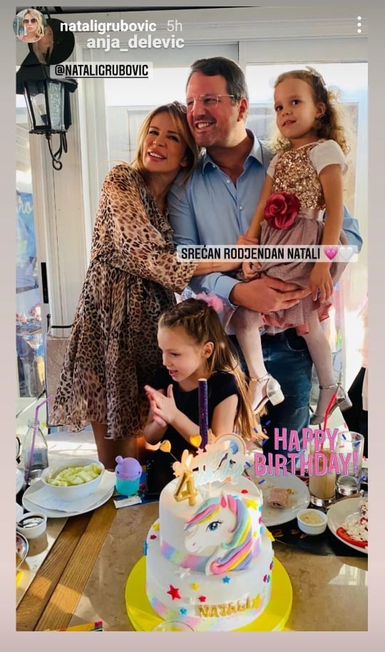 Наталија Грубовиќ, на Инстаграм сподели фотографија од неа, нејзиниот сопруг и нејзината ќерка, на која позираат а до нив се гледа роденденската свеќичка на тортата.