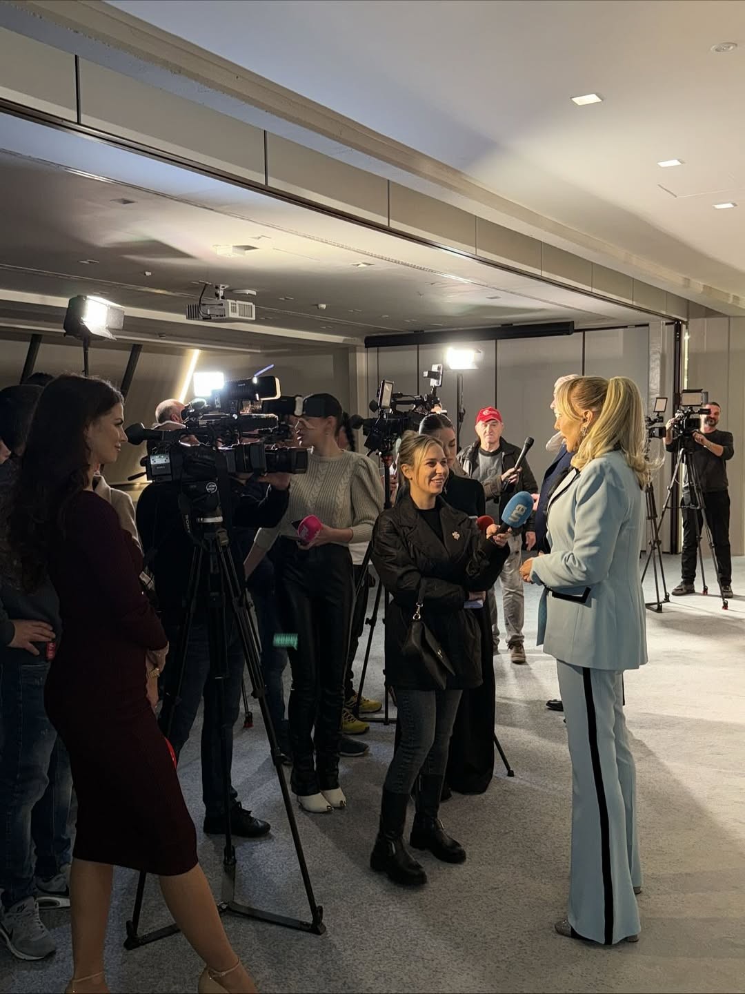 Дополнителен акцент привлекуваат фотографиите снимени на црвениот тепих на брендот Bozi, каде Брена и Петров стојат рамноправно, како тим кој функционира со голема професионална усогласеност. Тие кадри, особено оние во кои Брена широко се насмевнува, го пренесуваат нивното пријателство, доверба и опуштеност.
