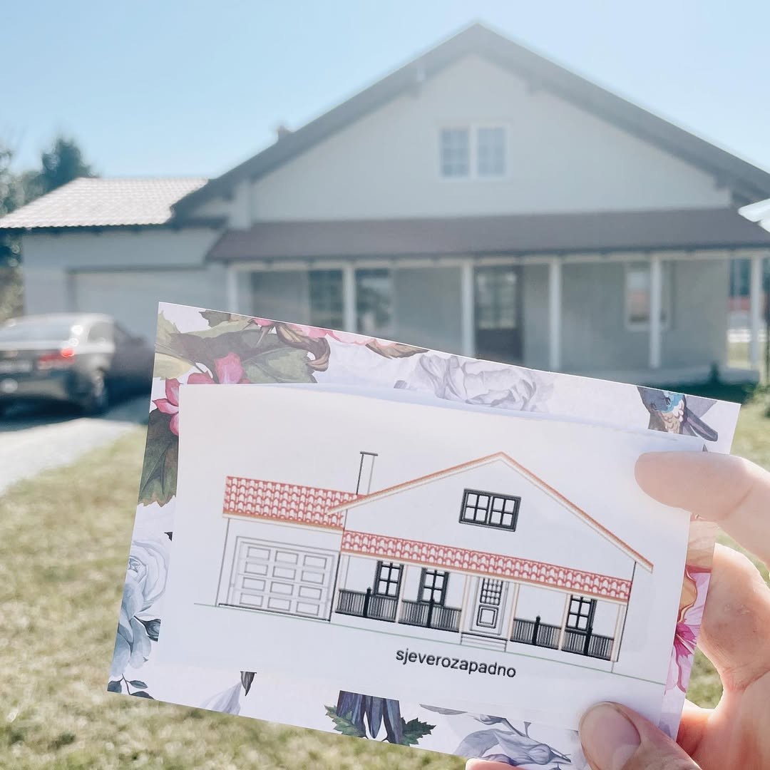 - Куќата има површина од 189 квадратни метри, а има и тераса, веранда и гаража. Одлуката падна на Иваниќ-Град бидејќи двајцата решивме да останеме во градот каде што пораснавме, нашето семејство и пријатели се тука, и тоа ја донесе одлуката. Сепак, долго време баравме земјиште што целосно ќе ни одговара, на крајот се појави табла за продажба на земјиште во ќорсокак што го гледам уште од дете, всушност се наоѓа на неколку метри од куќата каде што пораснав. Не размислувавме ни секунда, го зграпчивме земјиштето истиот ден кога се појави таблата за продажба. Видот на куќа е таканаречена „модерна фармска куќа“ бидејќи колку што знам за себе ми се допаѓаше само тој стил на куќа, па затоа беше најлесната одлука. Одлично е да се живее на слепа улица бидејќи сме многу побезгрижни со децата, потивко е, улицата е мала. Зад куќата имаме уште една улица која е малку попрометна, но од таа страна изградивме висока дрвена ограда што ја направивме сами, па затоа беше решено без многу мака - открива Мирна и додава дека оваа идеја за купување земјиште и изградба на куќа токму ваква се покажала како водич за убав семеен живот, среќна сопруга и успешен бизнис.
