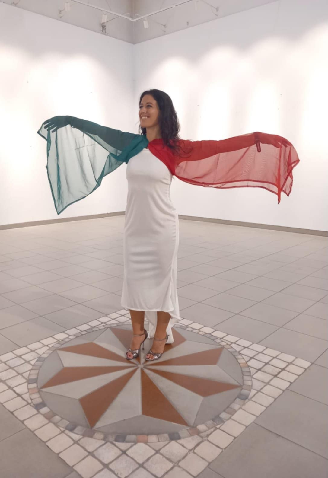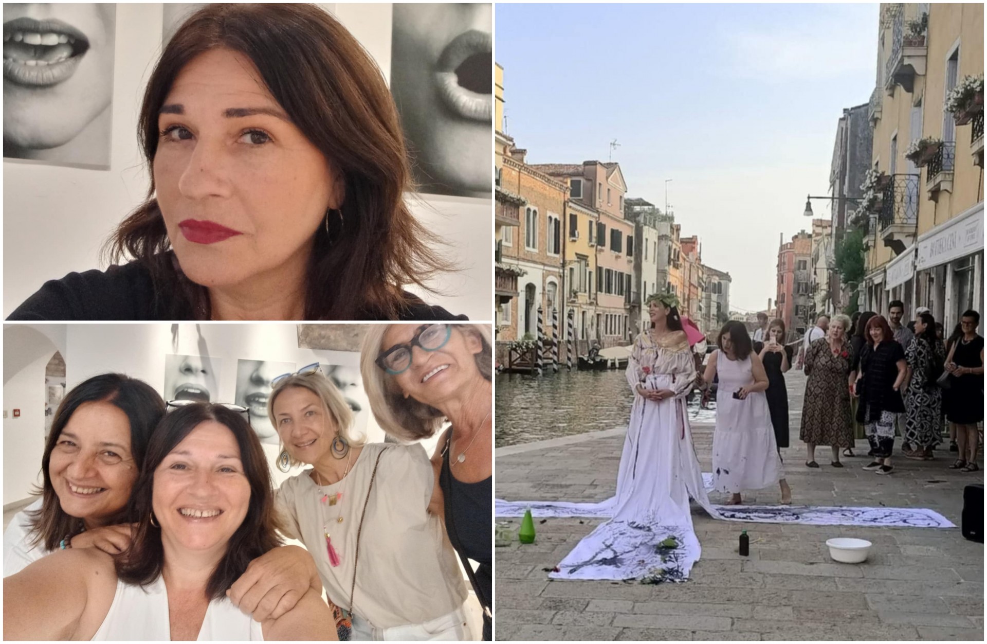 Со Нарине во перформансот во Венеција за Арт најт 2025та во јуни, имавме „танц” помеѓу модел кој беше своевидно „живо сликарско платно “ врз чиј фустан и тело ги нанесував потезите со туш и златна боја.