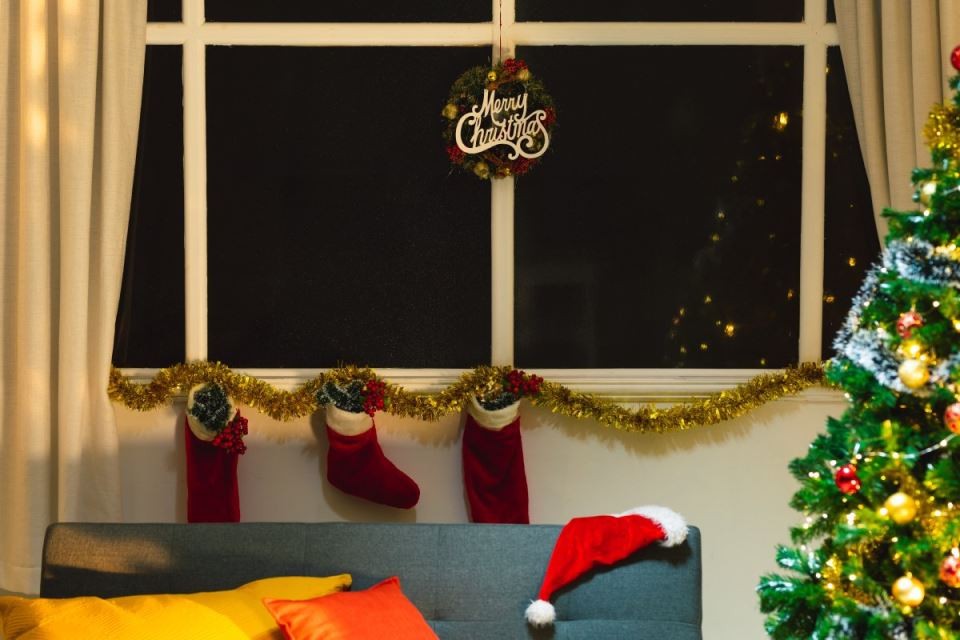 Немате камин? Не е проблем. Закачете ги чорапите на прозорецот. Важно е да вклучите празнична симболика.
