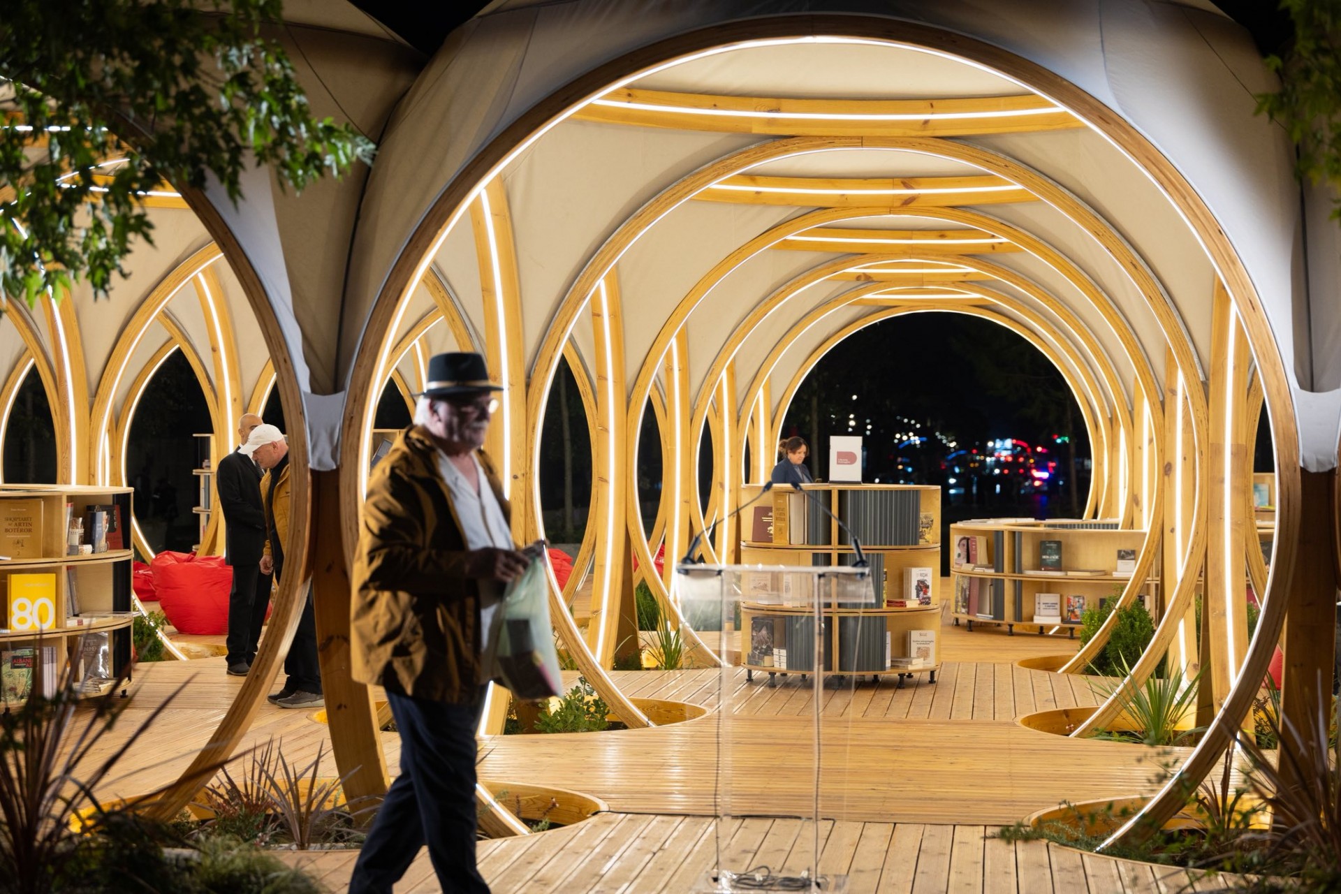 Сместена на плоштадот „Мајка Тереза“, дрвената прстенеста инсталација го враќа просторот од сообраќајот за пешаците да одат, да читаат и да сонуваат.