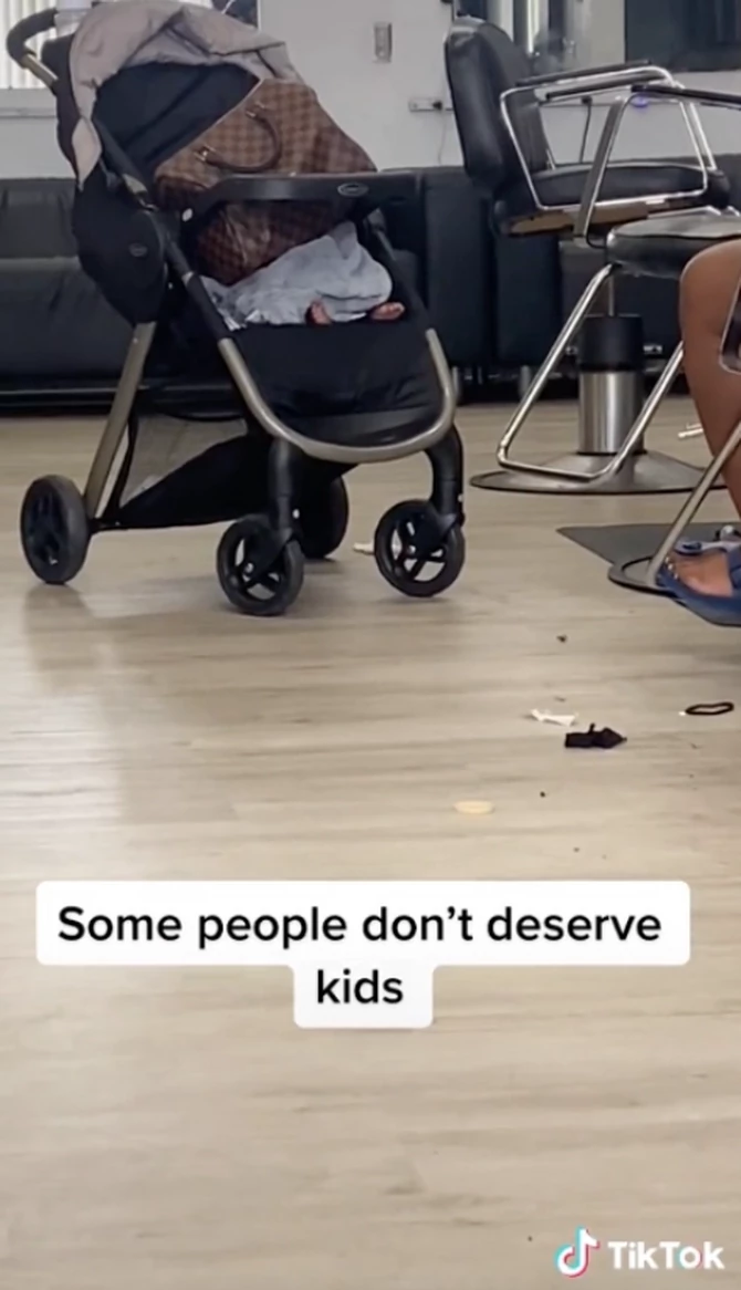 Жена по име Летиција Џој ставила видео на Тик Ток од мајка која дошла на фризер со своето бебе . Го оставила бебето во количката и ја спуштила торбата преку него.