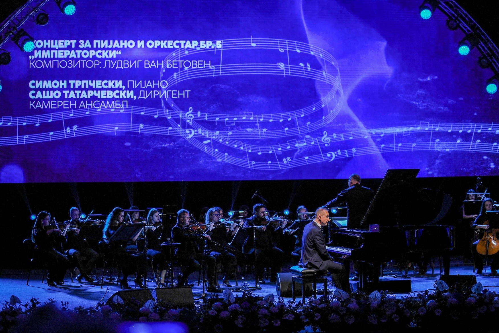 Под диригентската палка на Сашо Татарчев, присутните имаа можност да уживаат во фрагменти од концертот за пијано (Император) од Л.В. Бетовен, Унгарската рапсодија на Лист и музичка палета на повеќе-децениски поп хитови од земјава и регионот, во изведба на еден од најдобрите македонски женски вокали, Каролина Гочева.