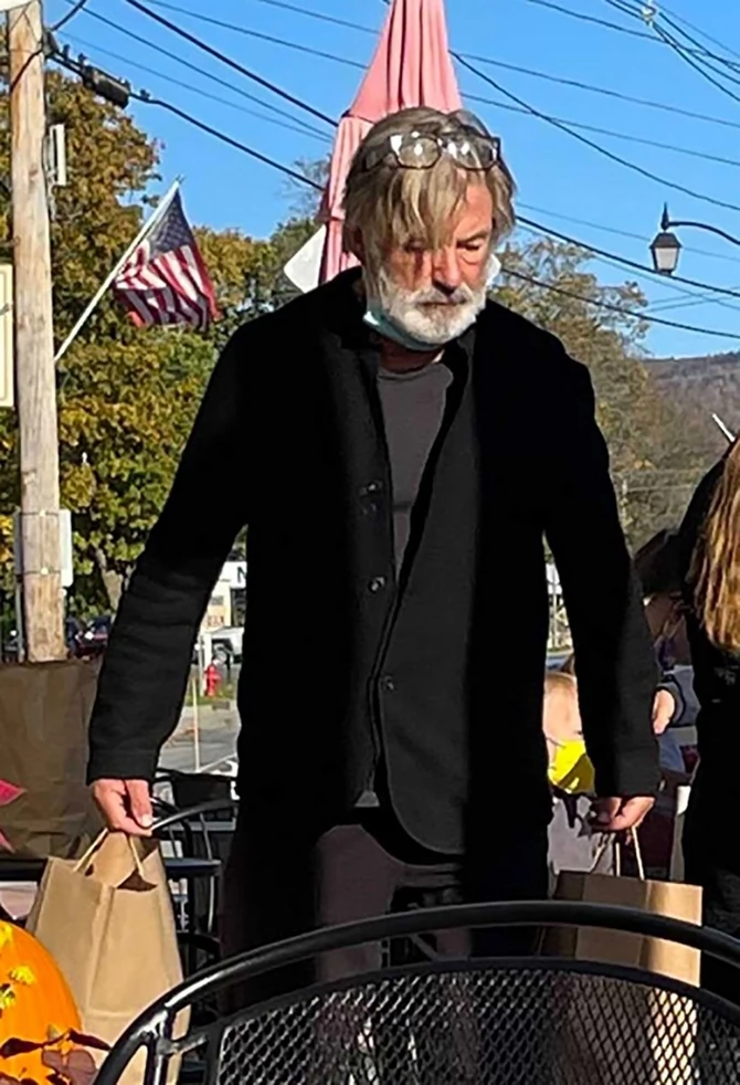 63-годишниот актер на сликите е видно нерасположен, во црно од глава до пети, со обрасната брада и неисчешлана коса. Лицето на Алек Болдвин покажува тага и отсутност, а тој беше фотографиран додека земаше храна.