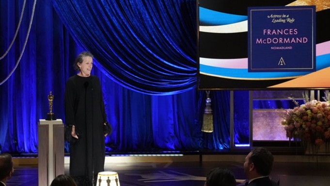 Оскарот го доби за најдобра актерка во главна улога, во филмот „Номадленд“ кој исто така се закити со Оскари, покрај оној за најдобра актерка, беше избран и за најдобра фотографија и најдобар директор.