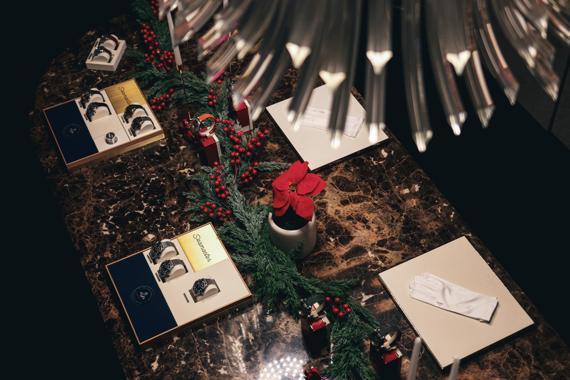 Во фокусот на вечерта беа избрани модели од OMEGA Seamaster Aqua Terra колекцијата, претставени како дел од концептот The Gift of OMEGA. Колекцијата е препознатлива по својата разновидност и баланс меѓу спортска елеганција и софистициран дизајн – часовници создадени да се носат секојдневно, но и да останат релевантни со години.