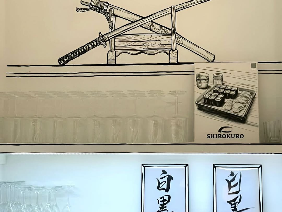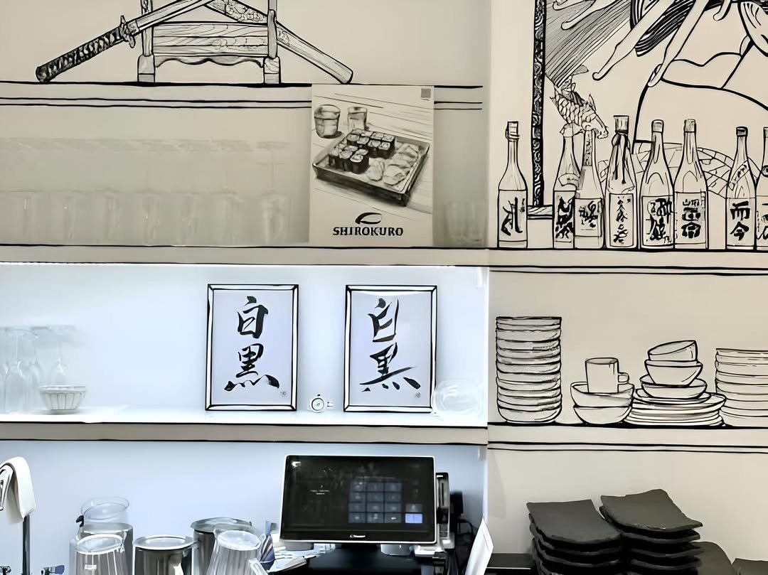 Името на ресторанот - Широкуро, што на јапонски значи „бело и црно“ - совршено го опишува визуелниот идентитет на просторот. Секое бонсаи, секое шише саке, секоја линија на масите и столчињата е создадено од раката на Мирим Ју, која го дизајнирала и обоила целиот ентериер цели три месеци.