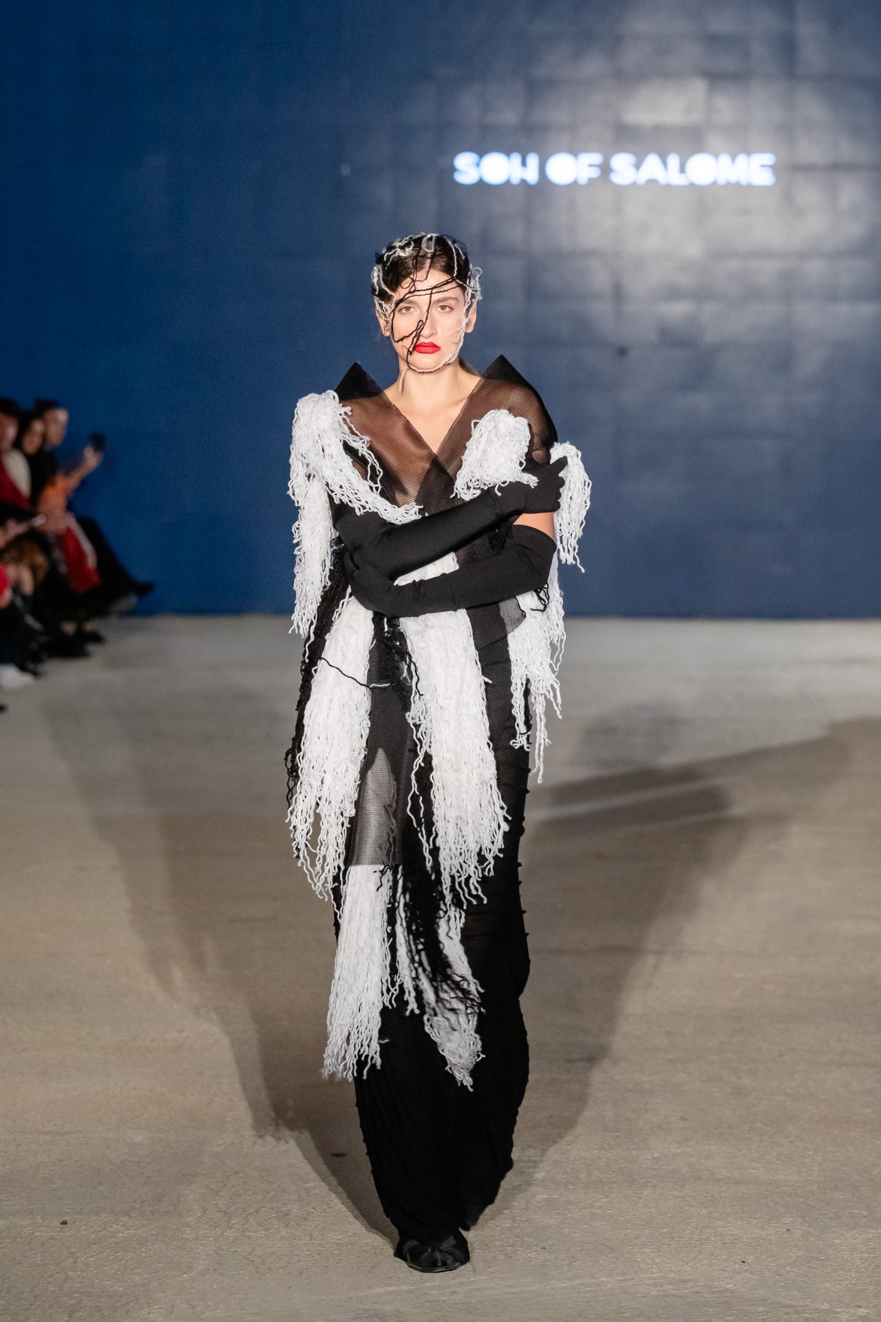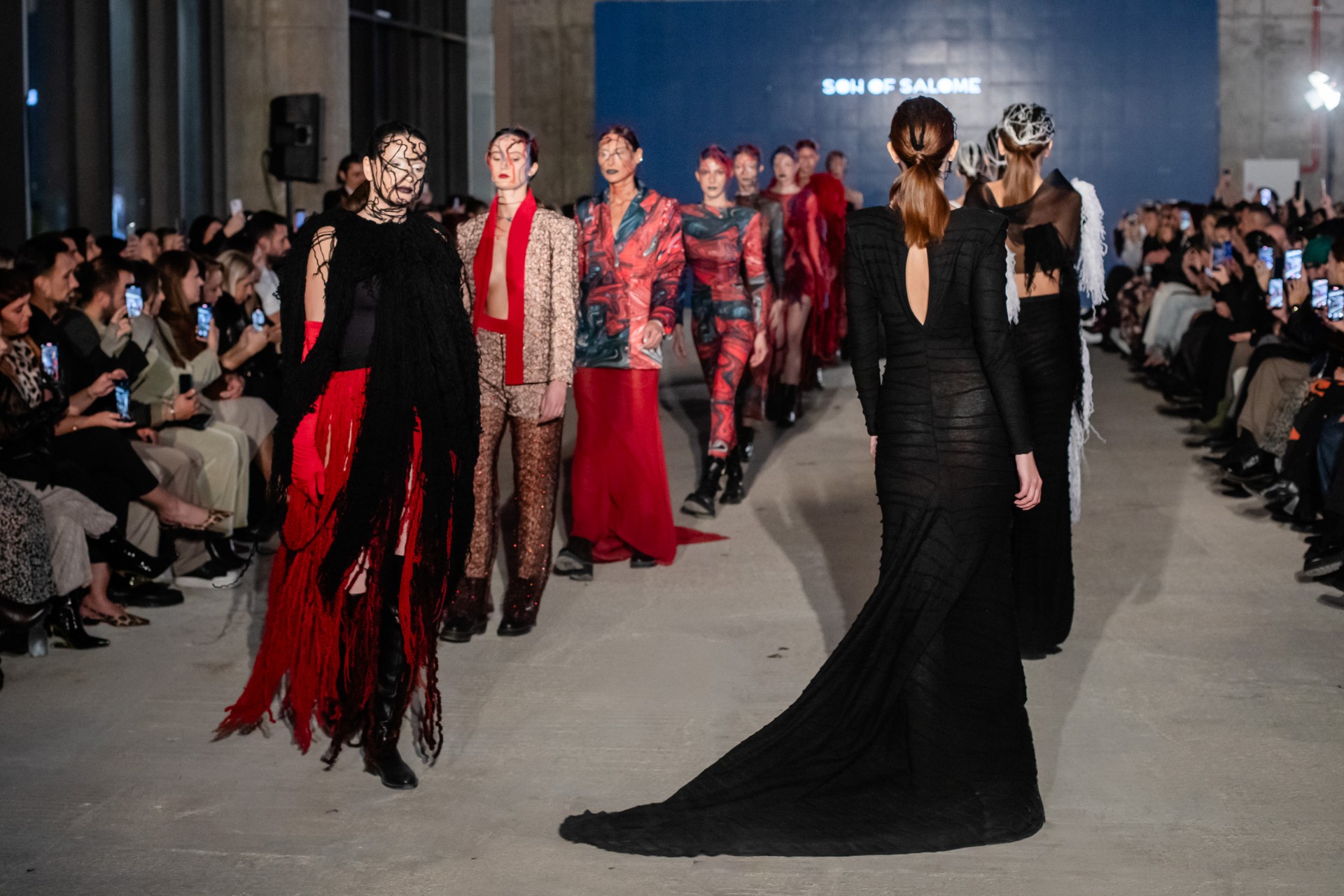 Son of Salome ја претстави својата F/W 25/26 колекција „The Fourteenth Day“ — поетски чин на љубов, тишина и прочистување. Десет силуети, изработени со прецизност и контраст, ја раскажаа приказната за болката што се претвора во убавина. Волна, тул и рачно обележани ткаенини создадоа естетика на спротивности — распаѓање и преродба, тежина и леснотија, темнина и светлина.Колекцијата беше поддржана од Министерството за култура и туризам.