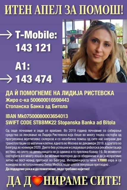 Доклку сакате да и помогнете на Лидија, тоа може да го направите на телефоните подолу :